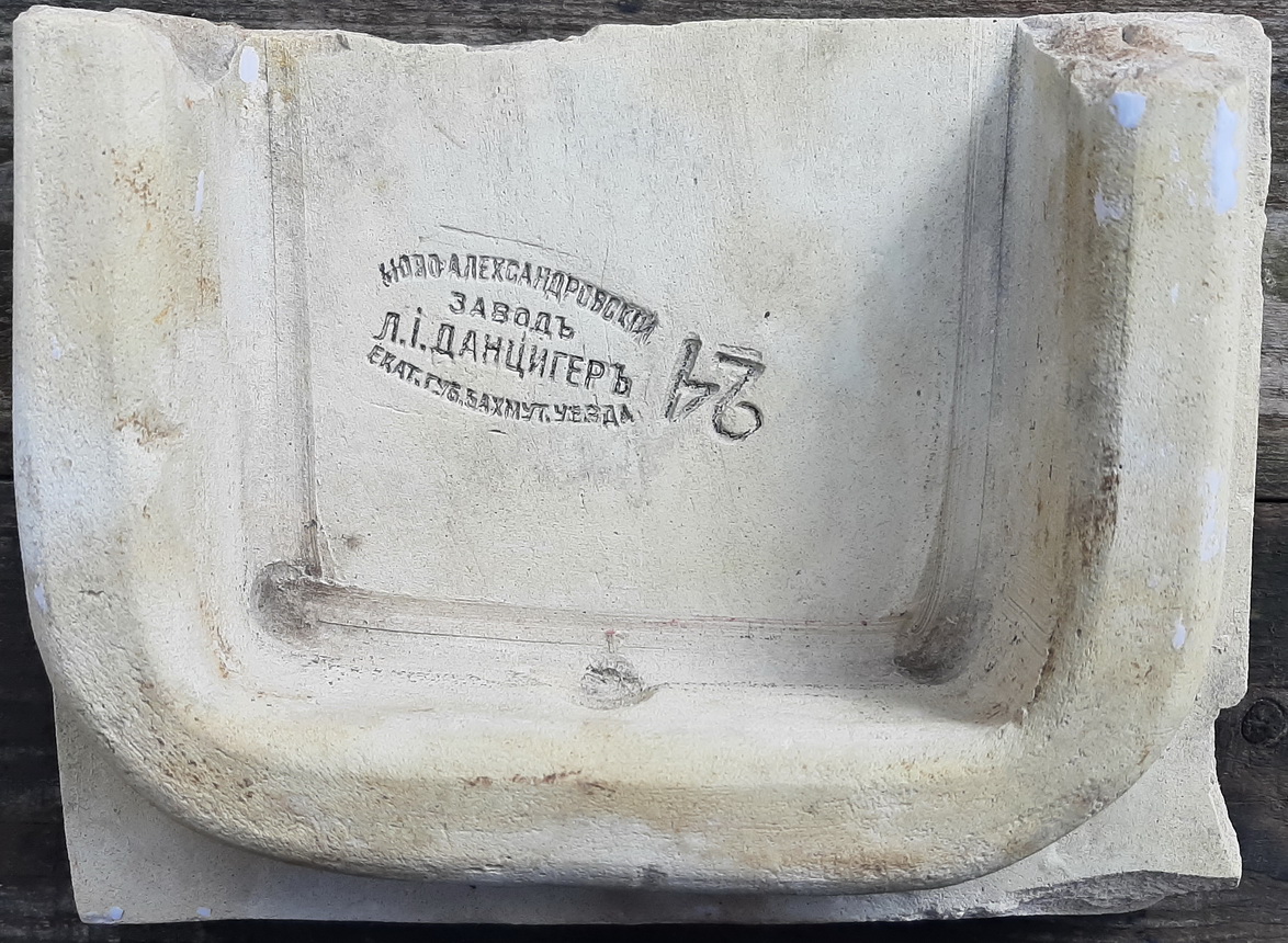 Завод: Екатеринославская губерния, Бахмутский уезд. Кафельный завод Леона Иосифовича Данцигера располагался в д.Ново-Александровская (ныне входит в территорию современной Дружковки в составе ДНР). В различных справочниках завод указывался также в д.Ново-Еленовке (более крупное поселение в 2км от Ново-Александровки), а также ошибочно в «Ново-Алексеевке», хотя на клейме определенно написано «Ново-александровский завод». Завод был основан в 1889(91)г., а в начале 1900-х уже записан за братом Л.И.Данцигера, провизором Григорием Иосифовичем. После 1907г. этот завод больше не упоминается в справочниках.