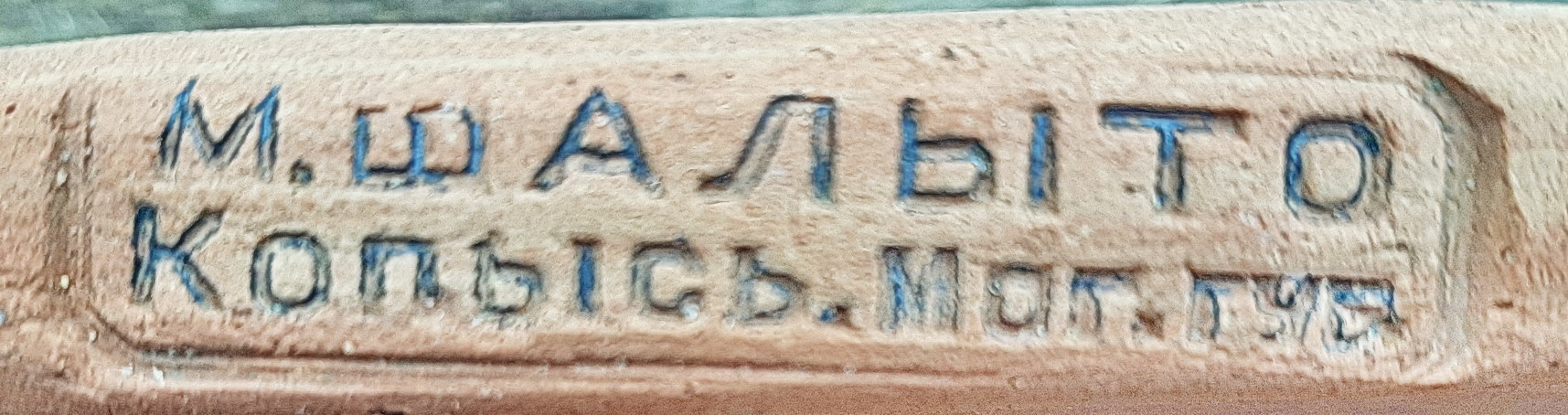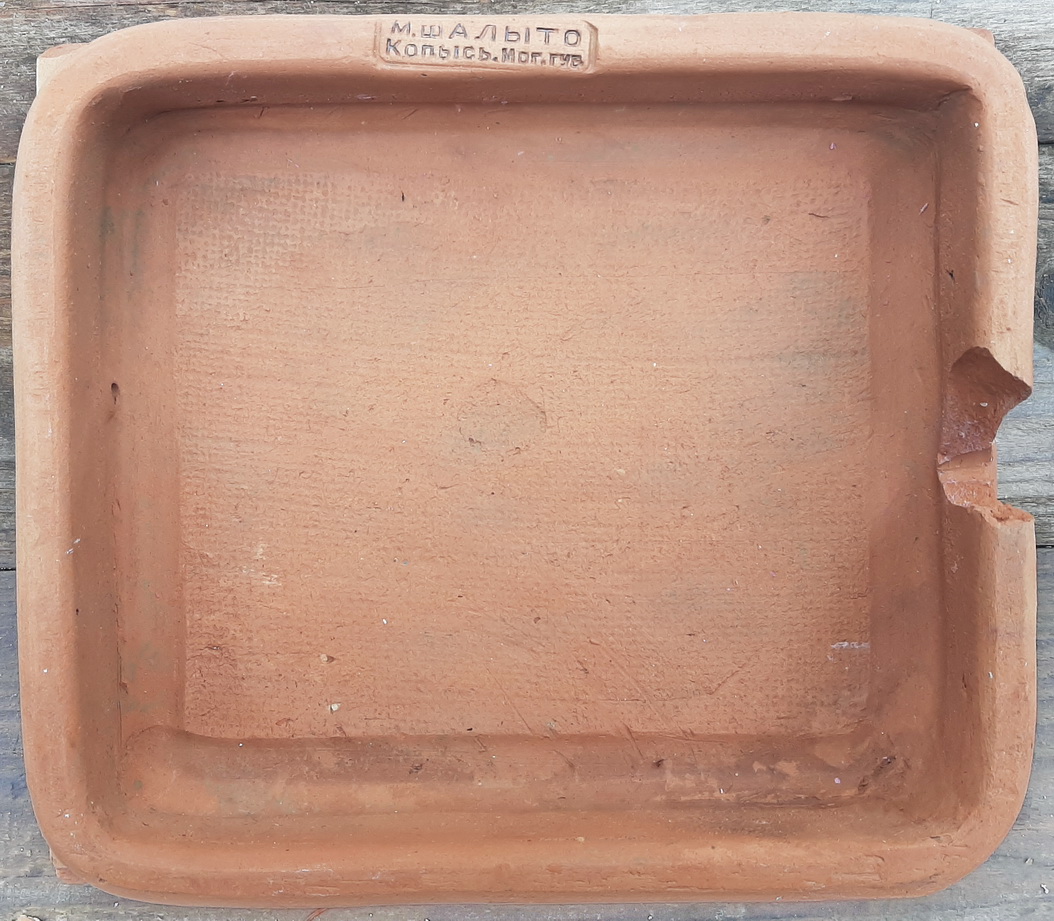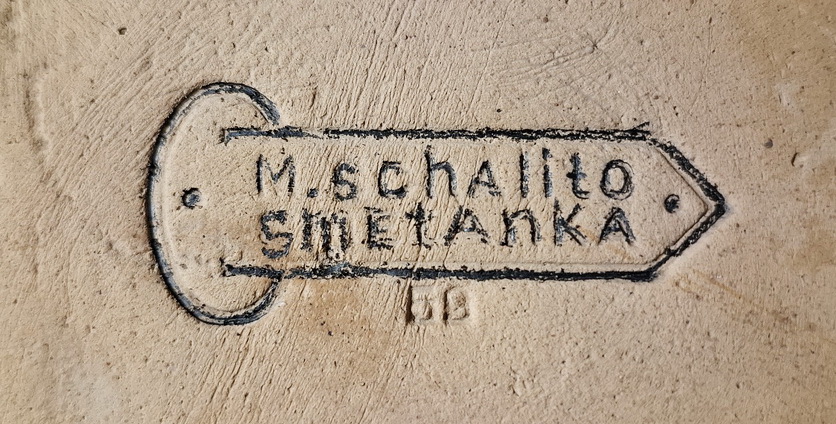 Завод: Могилевская губерния, Горецкий уезд, г. Копысь. В 1897г. неподалеку от железнодорожной станции Копысь гончарно-изразцовый завод открыл Мордехай Левикович/Лейбович Шалыт(о). Чуть ранее 1910г. в деревне Сметанка Любиничской волости его сын Гессель Мордкович Шалыто согласно справочным данным арендует давно работающий изразцовый завод дворянина Льва Николаевича Чачкова. Однако, как следует из второго образца, на клейме заводе "Сметанка" какое-то время также продолжали использовать имя не Гесселя Шалыто, а его отца М.Л.Шалыто. Последнее раз заводы упоминаются в справочнике 1914г.